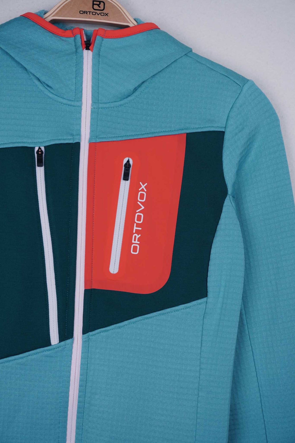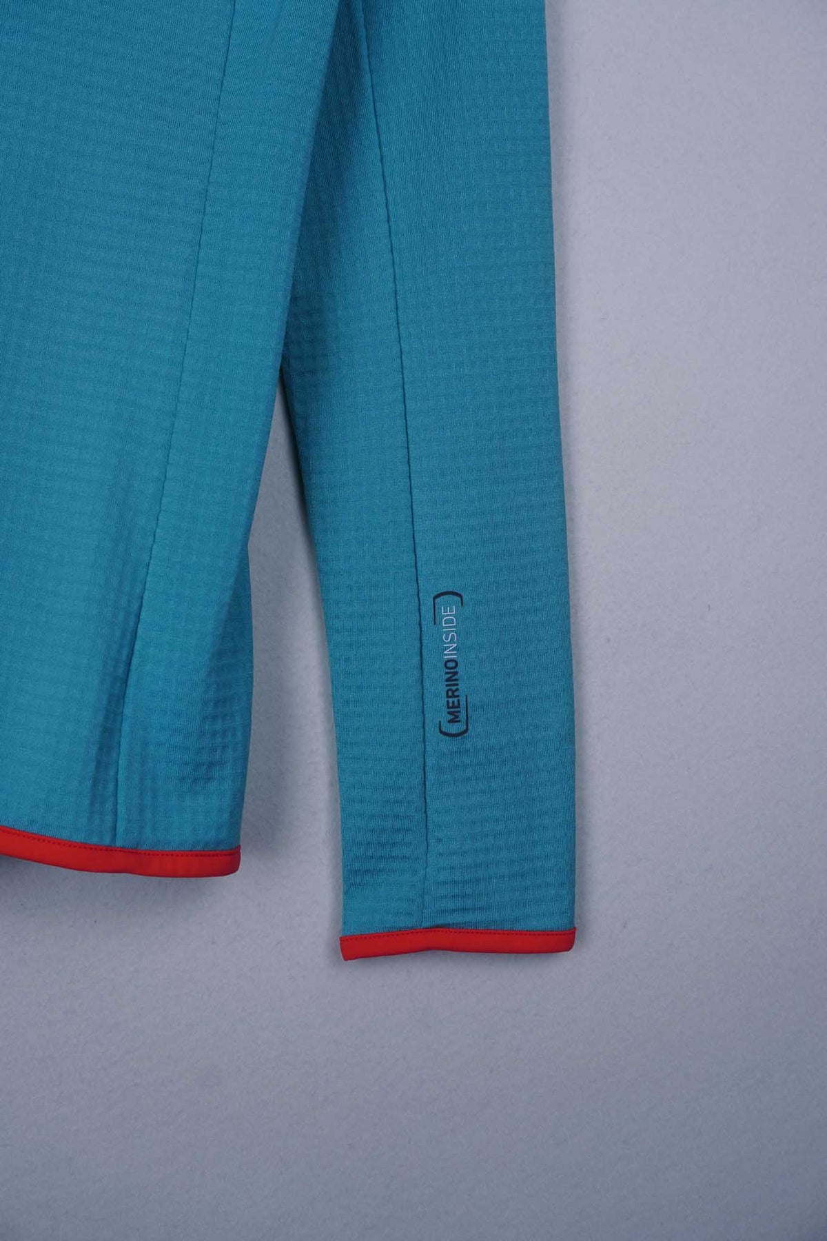 Das MERINO FLEECE GRID Material bindet in seiner feinen Waffelstruktur warme Luft auf der Innenseite und gibt Feuchtigkeit nach außen ab, sodass der Hoody einerseits angenehm wärmt, andererseits aber auch schnell trocknet und äußerst atmungsaktiv ist. Die angenehm weiche Merinowolle auf der Haut sorgt für eine optimale Klimaregulierung und wirkt gleichzeitig geruchshemmend. An exponierten Stellen wie Brust, Schultern und Kopf schützen Einsätze aus elastischem und atmungsaktiven MERINO FLEECE LIGHT vor Wind und Kälte.